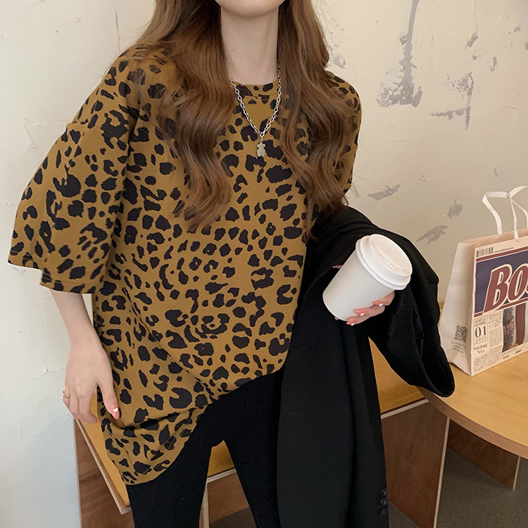 レオパード柄半袖Tシャツ レディース ゆったり 韓国風 2024年新作 夏用インナー原宿系カジュアルトップス