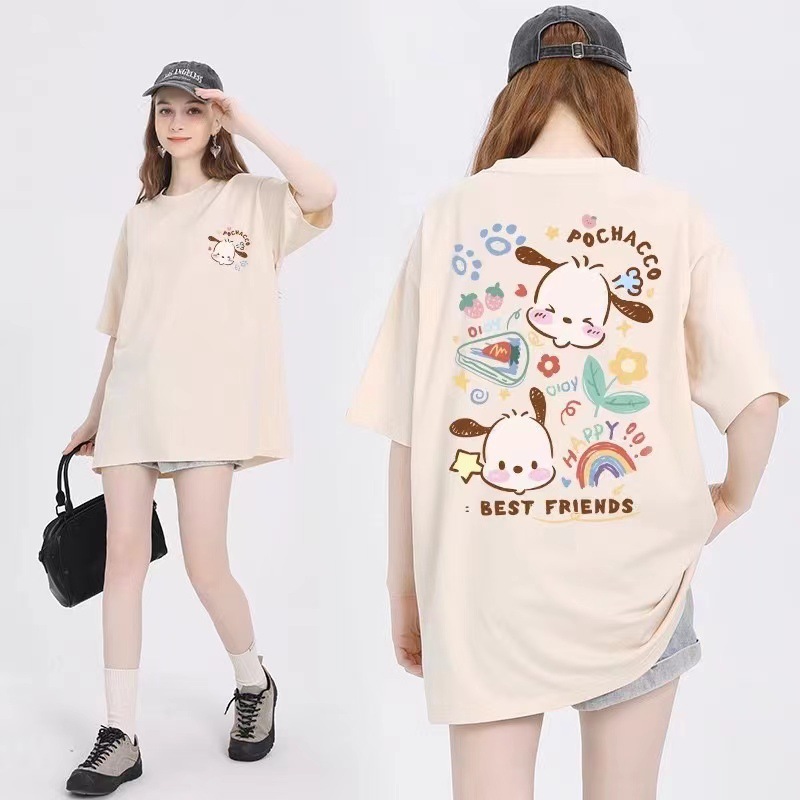 綿質の怠惰な風の中の長い半袖tシャツの女性2024年夏の漫画のかわいい丸首の上着の対外貿易の卸売り