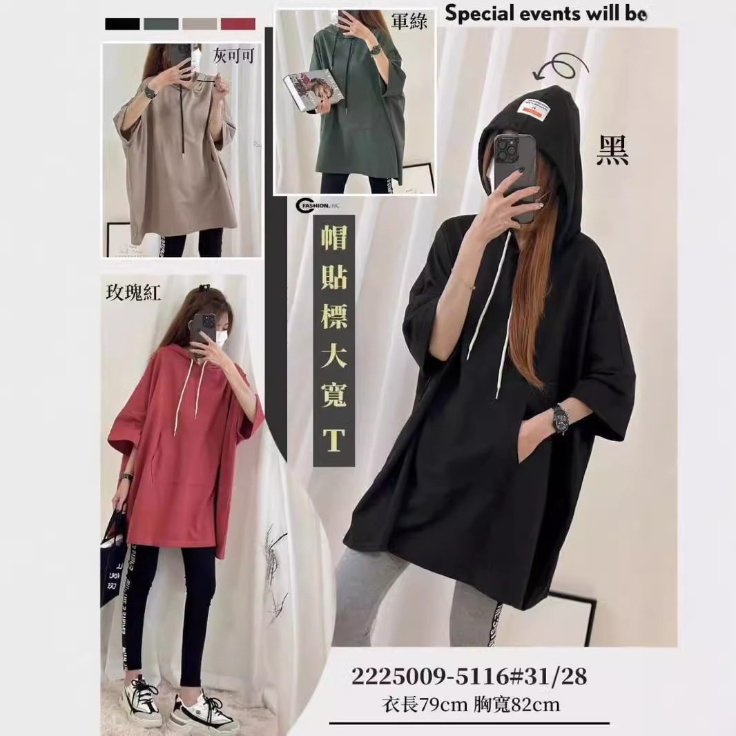 女性の純色2023の薄いタイプの帽子付きのラベルの中で袖のtシャツの女性はお尻の中で長いタイプのゆったりしていてカジュアルでやせている上着を隠します。