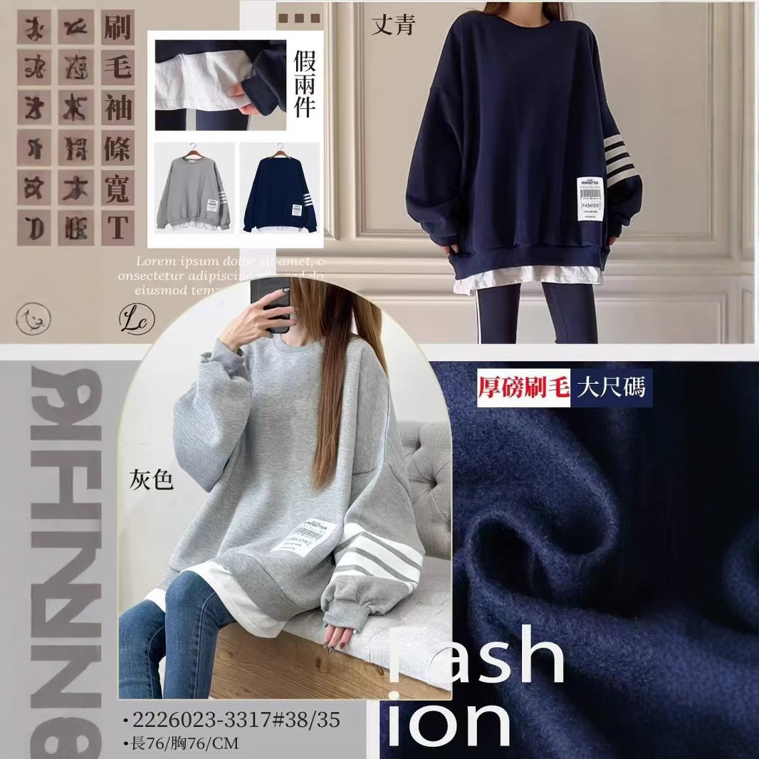 秋の冬の2024の新型の毛輪の通勤の衛衣のゆったりしている大きい版の韓国版のinsの上着の丸首の大きいサイズのカジュアルな印