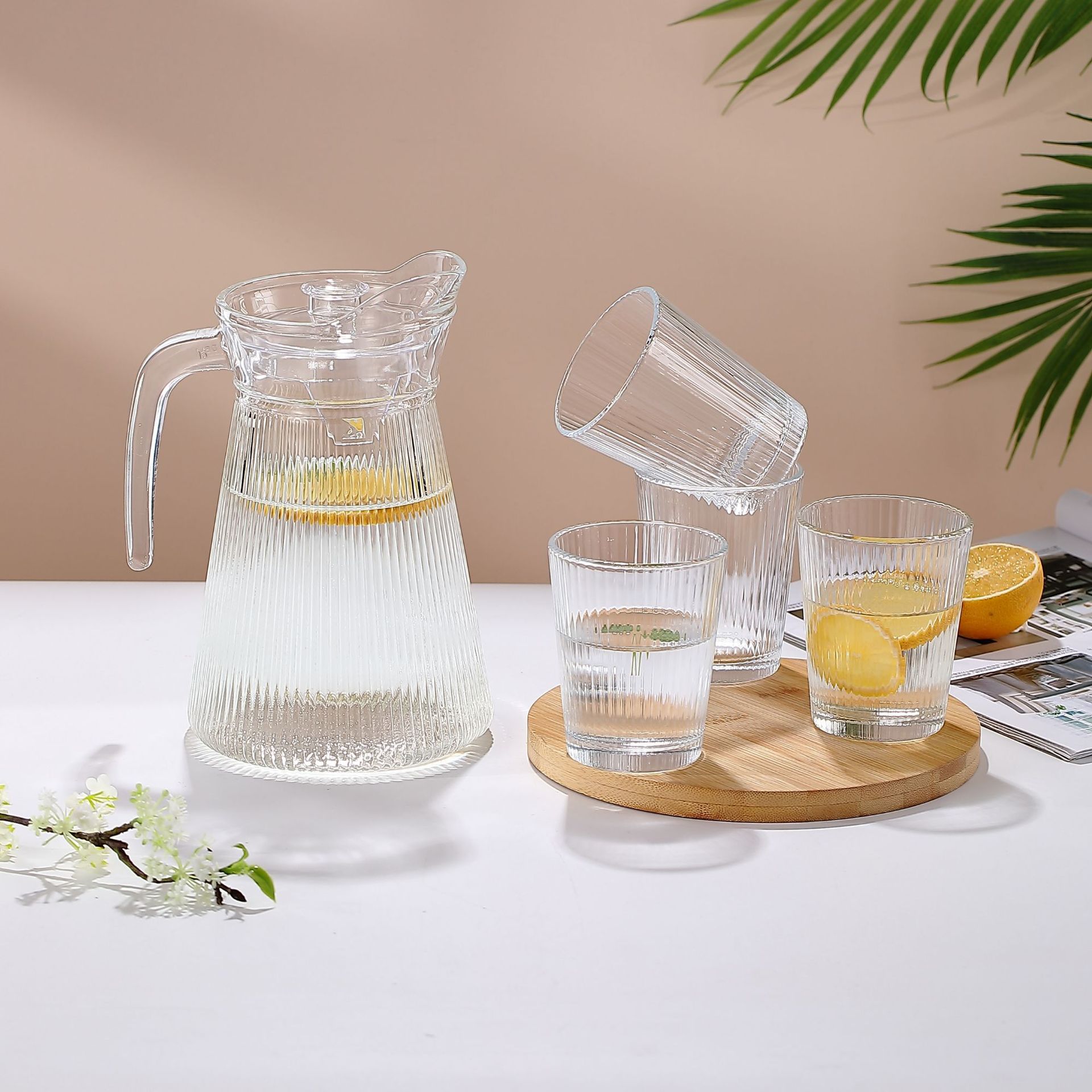 縦紋水具セットガラス冷水筒ジュースカップ5点セットレストラン耐熱冷水筒ジュエリーオープンプレゼント