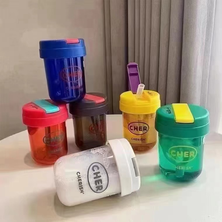 携帯コーヒーカップかわいいミニカップシンプルな新しいストロー付きカップ高颜値衝突色トレンドカップ