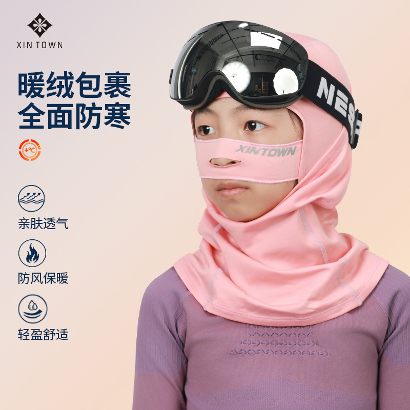 星恒加毛二重スキー子供保温ヘッドカバー自転車マスク電動自転車ヘッドカバー冬顔マスク