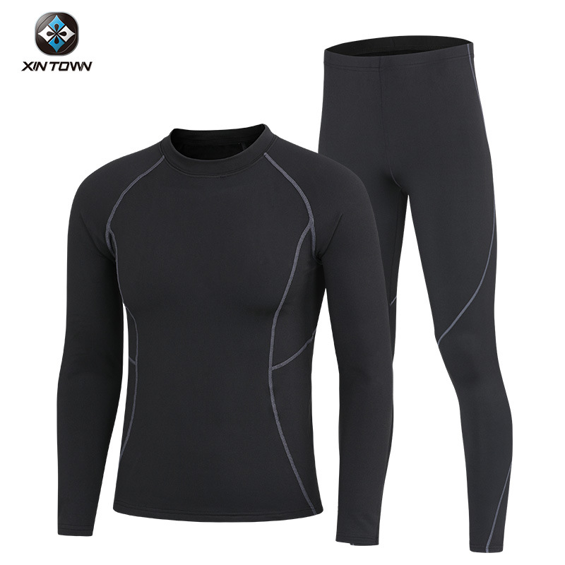 星恒運動保温下着男性防風修身フィットネス服セット秋冬カシミヤ長袖セット