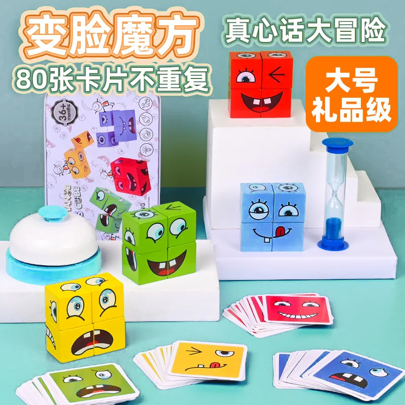 【メーカー直供】変顔ルービックキューブ積み木児童知育玩具親子インタラクティブ知的思考訓練笑顔