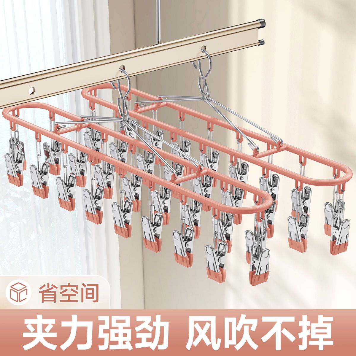 【メーカー直供】ステンレス靴下棚大干し棚クリップ家庭用無痕靴下クリップ20ハンガーベランダ