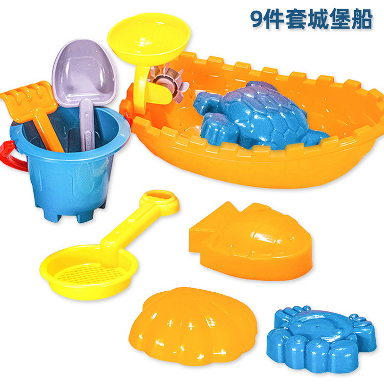 子供9点セットのビーチ玩具セットは、砂遊び水ビーチ船のビーチシャベルを卸売りして砂道具シャベルを掘る