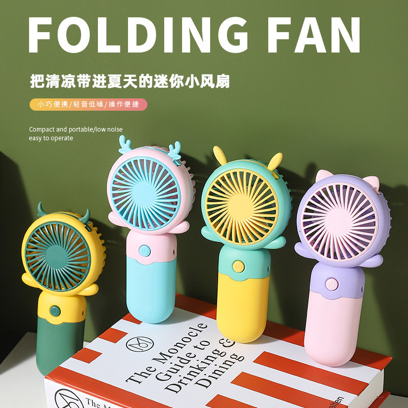 クロスボーダー2024新型ハンディ鹿角ファン学生ミニ電動ポータブルUSB屋外ストラップ付きファン