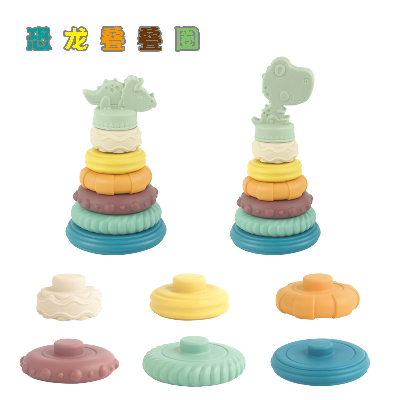 恐竜の積み重ねのコップの浴室の入浴のおもちゃの早教の創意の積み木の積み重ねの楽しみの幼児のメーカーは国境を越えます。