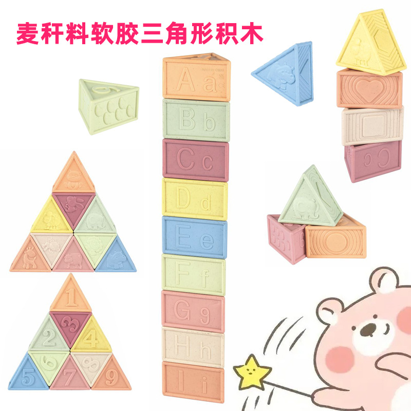 子供の越境の益智の三角形の幾何学の立体の積み木のおもちゃの柔らかいゴムの卸売りの環境保護の麦わらの材料の積み重ねの楽しみ