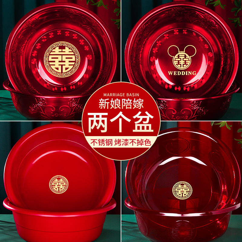結婚用の喜盆の女性の方はステンレスの洗面器の結婚式の赤い赤い盆のウェディング用品と結婚します。