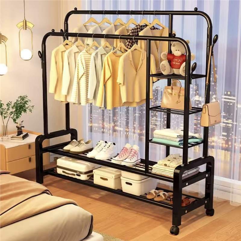 簡易ハンガーの床には家庭用ハンガーが掛けられています。