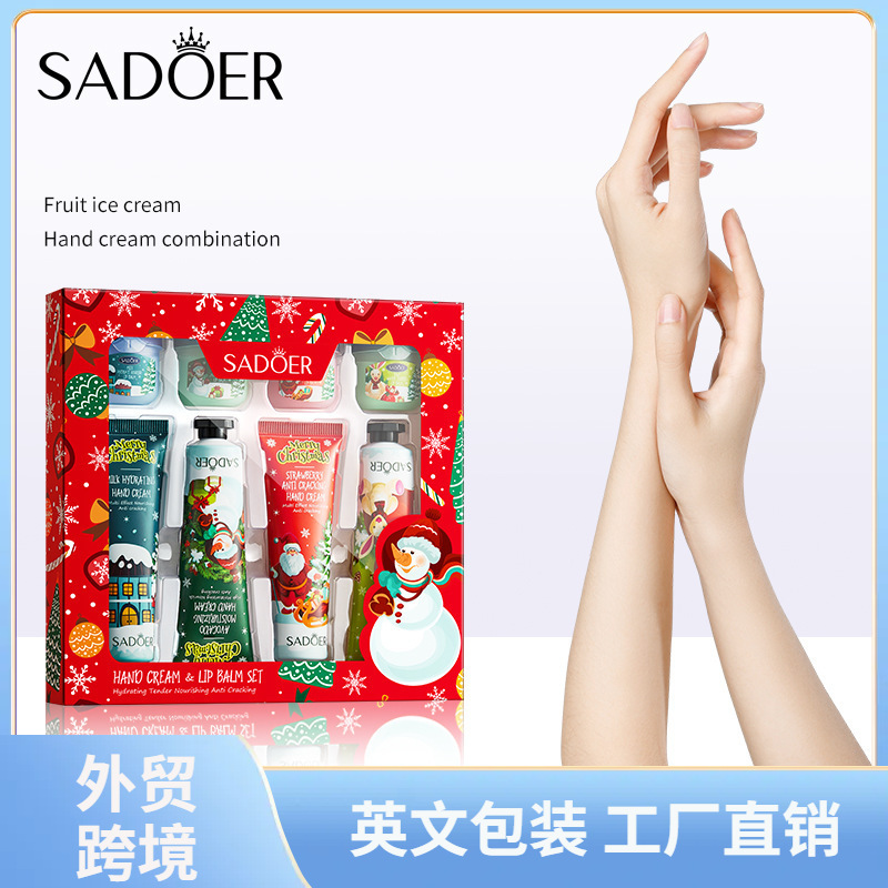 全英語SADOERクリスマス保湿保護乾燥防止ハンドクリーム唇クリームセットクロスボーダー対外貿易卸売り