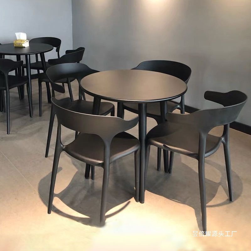 屋外ミルクティー店カフェ炭素鋼テーブル現代家庭用ベランダレジャーコンビニ外に炭素鋼テーブルと椅子を置く