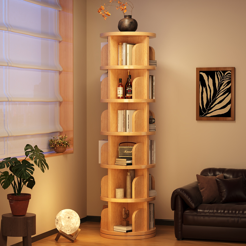 無垢材回転本棚 360 度床から天井までの棚シンプルな狭いキャビネット子供の絵本棚幼稚園コーナー本棚