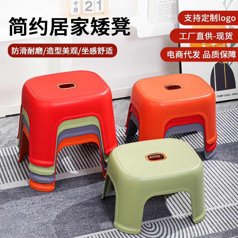 シンプルでファッション的なプラスチックスツール家庭用スツール浴室スツール靴交換スツール厚いスツール滑り止めバー付きプラスチック椅子