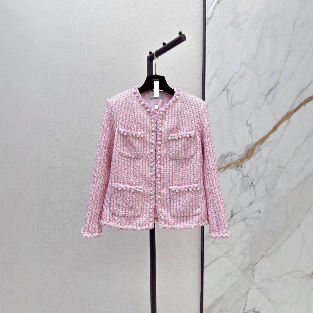 深圳南油2025春夏明星同款少女风高级闪闪樱花粉珍珠外套