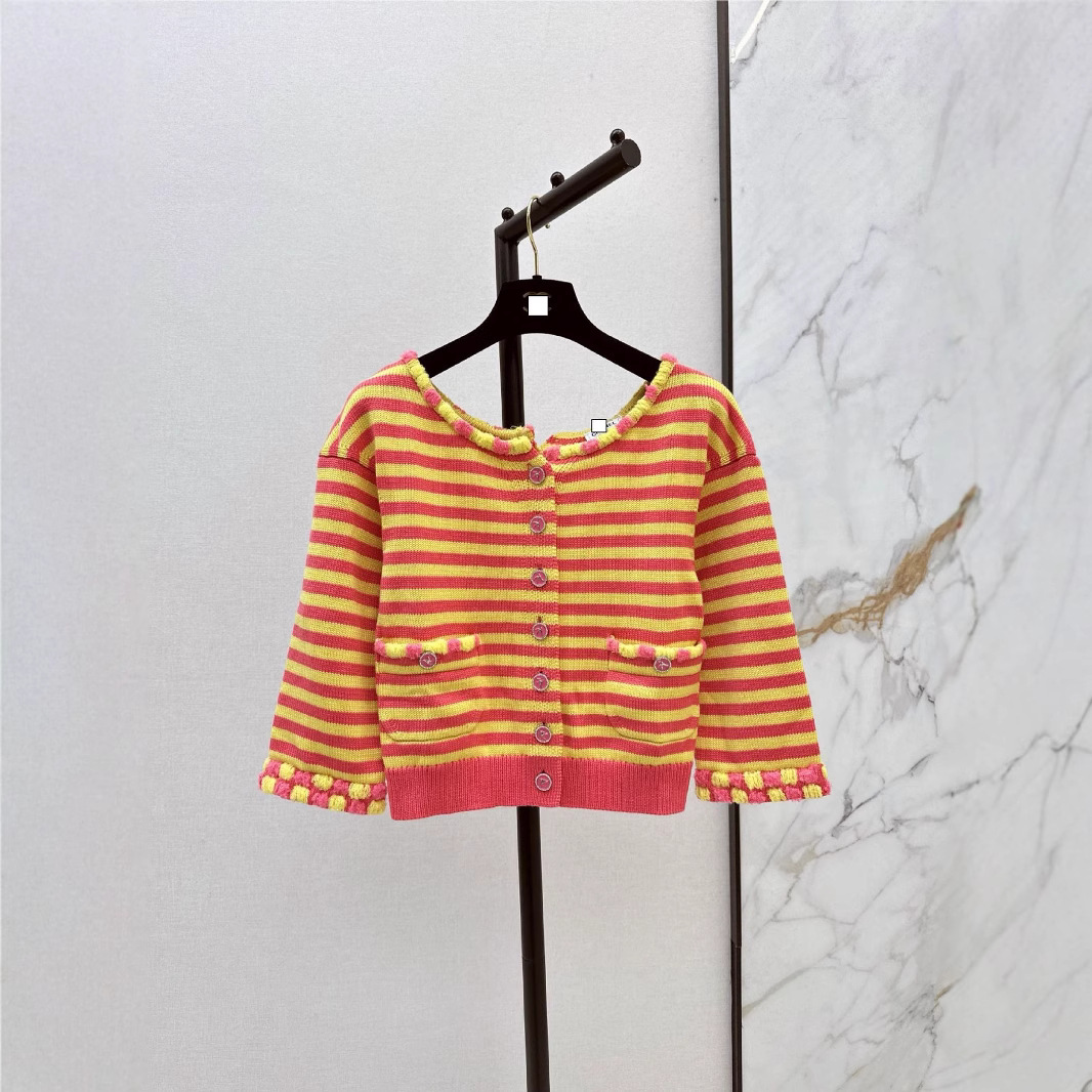 深圳南油2025春夏彩条针织少女风一字肩撞色条纹短款开衫