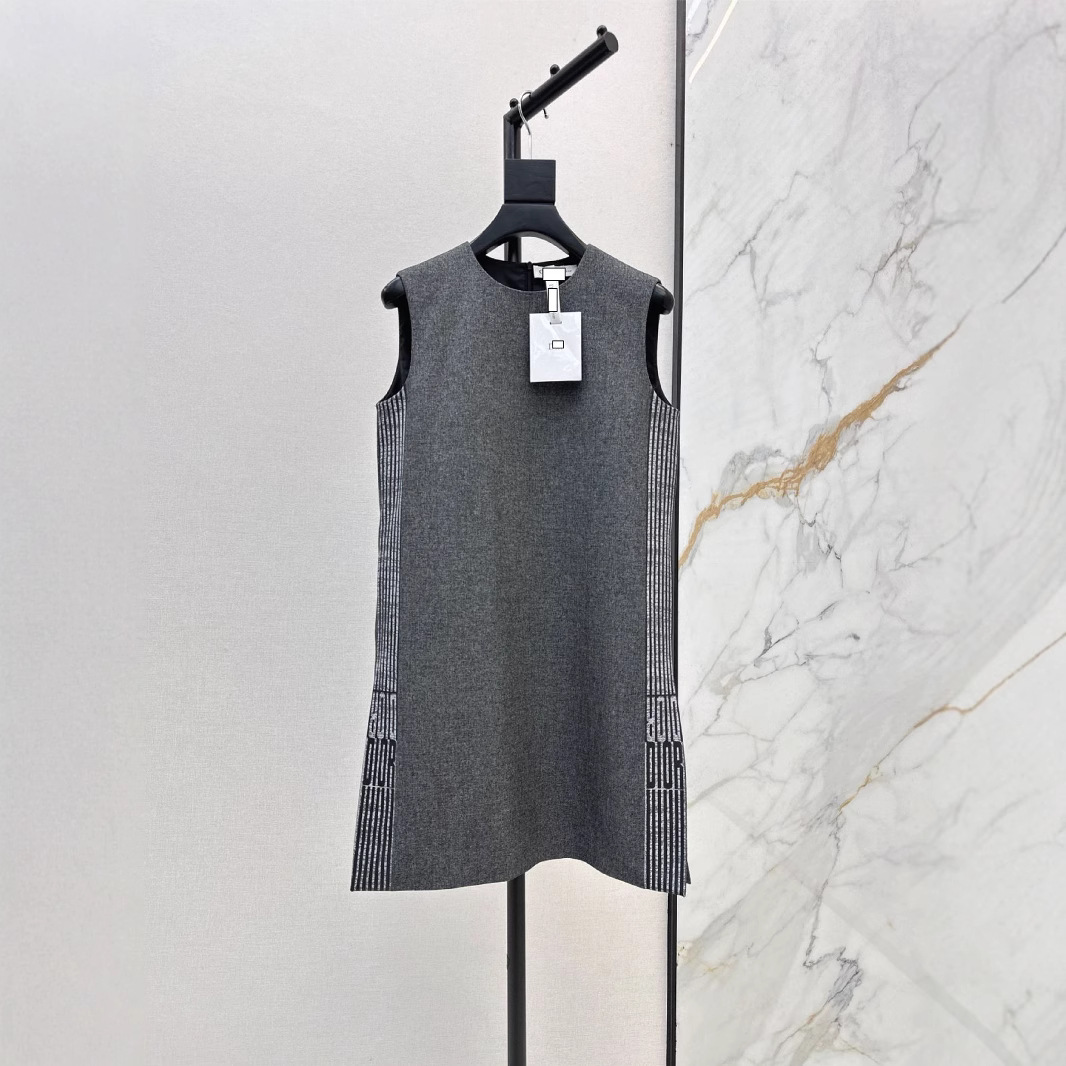 深圳南油2025春夏中性灰色系拼接logo织带装饰无袖连衣裙
