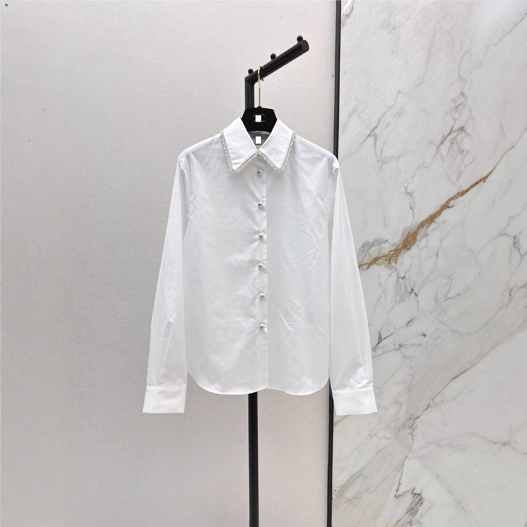 深圳南油2025春夏随性高级小香风珍珠镶嵌翻领双C提花衬衫