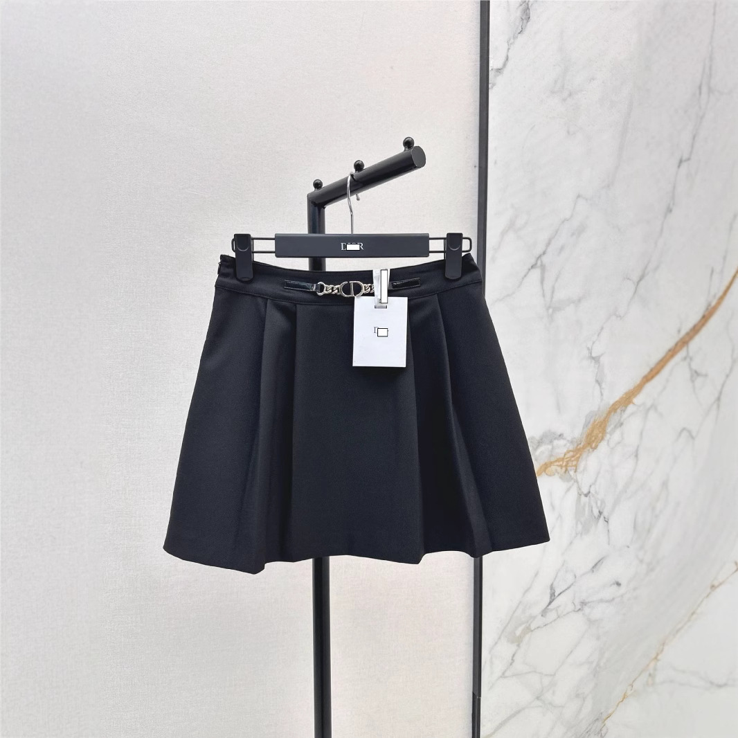 深圳南油2025春夏五金腰链装饰极简百搭压褶半裙