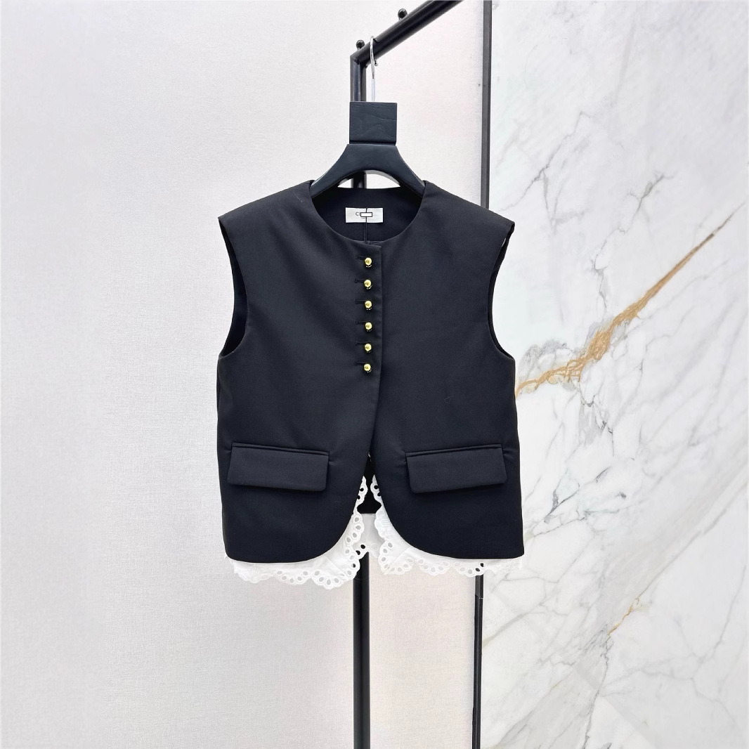 深圳南油2025春夏休闲时髦假两件设计感马甲外套