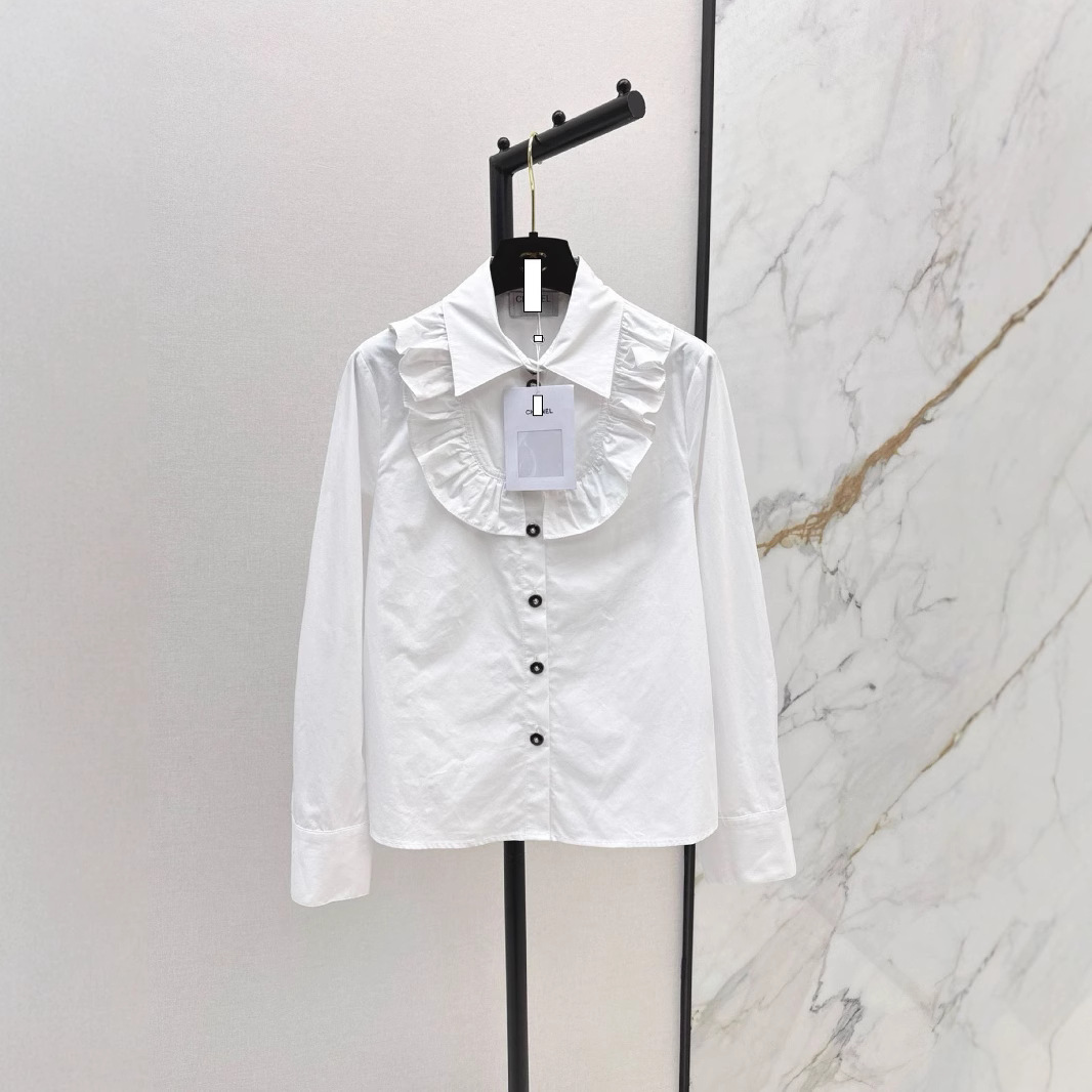 深圳南油2025春夏复古风C家小香风宫廷风花边领襟白衬衫