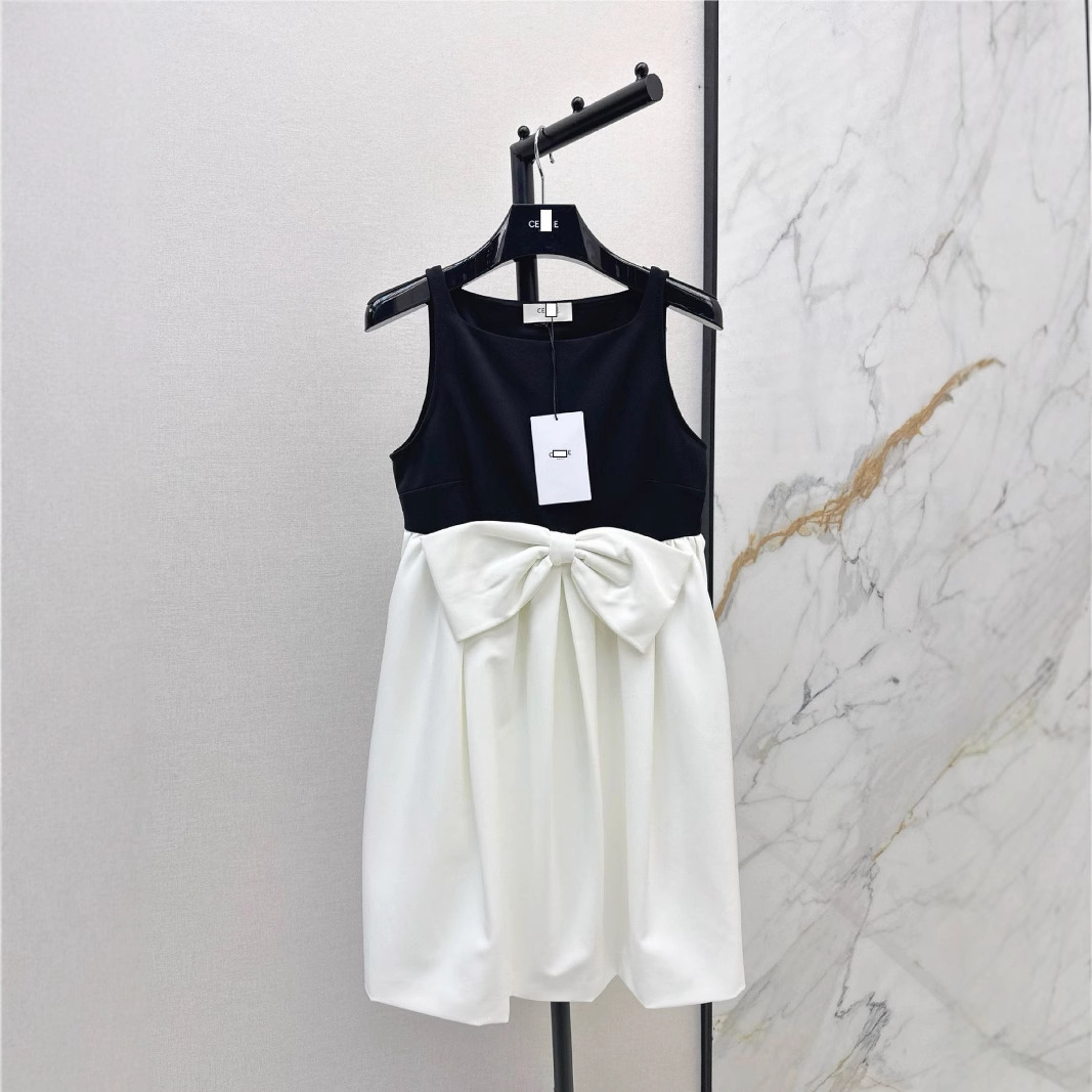 深圳南油2025春夏减龄必备CE经典黑白撞色收腰蝴蝶结连衣裙