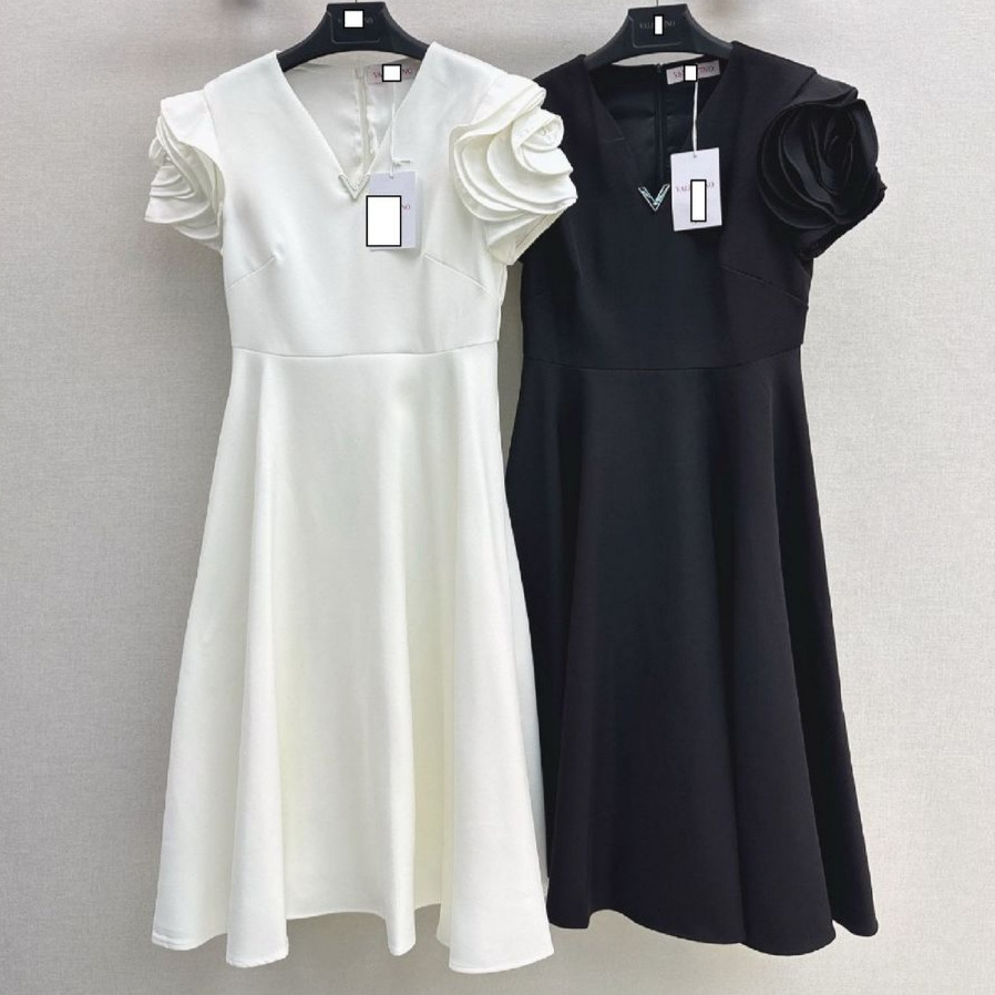 深圳南油2025春夏复古优雅精巧别致两侧立体花朵装饰长款连衣裙