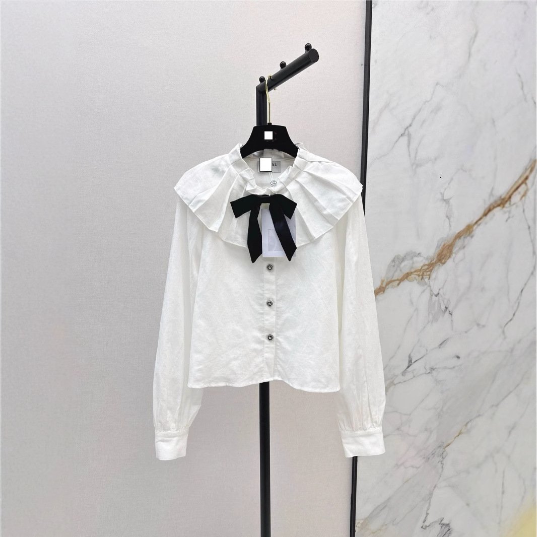 深圳南油2025早秋甜美的公主风端庄优雅蝴蝶结装饰棉麻衬衣
