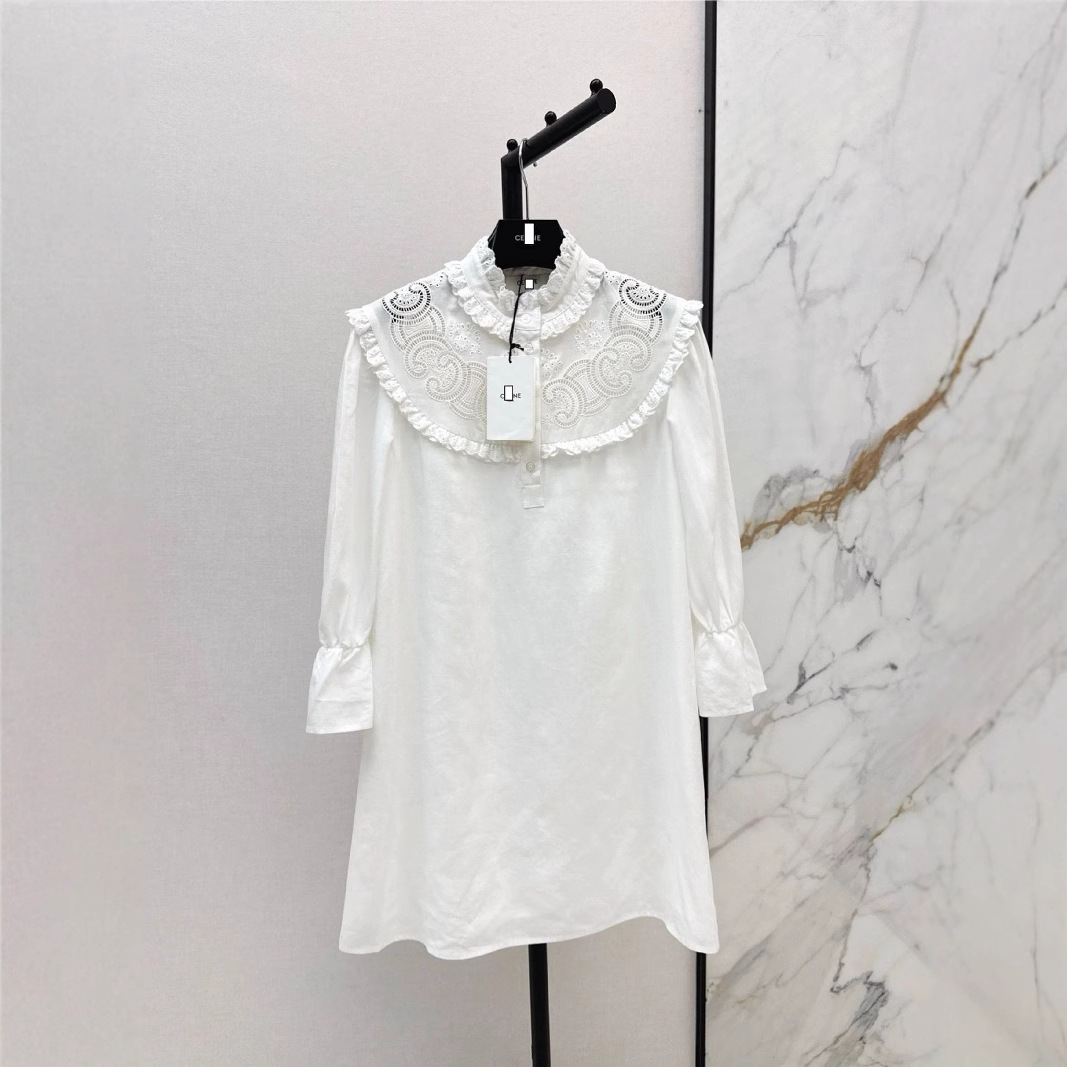 深圳南油2025春夏复古文艺风减龄logo绣花花边小立领棉麻长袖衬衫
