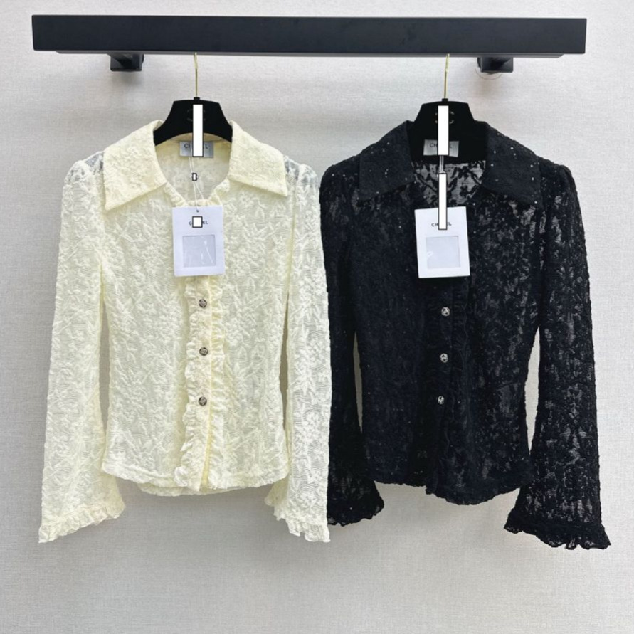 深圳南油2025春夏优雅大气钩花蕾丝衬衫