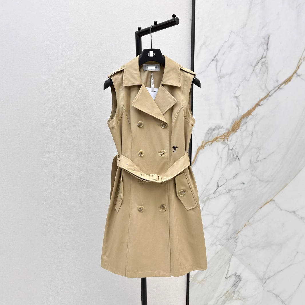 深圳南油2025春夏无袖立体收腰A字裙摆显瘦卡其色显白双排扣设计