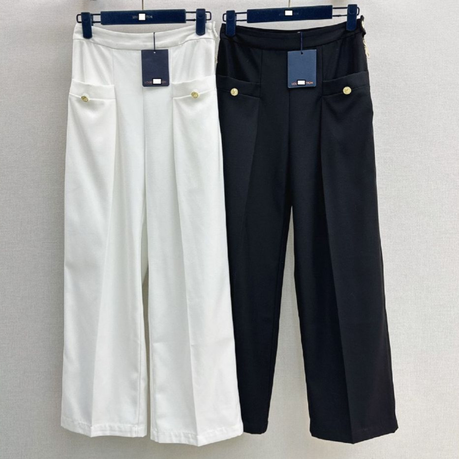 深圳南油2025春夏显瘦高级直筒阔腿裤型logo金扣高腰阔腿裤