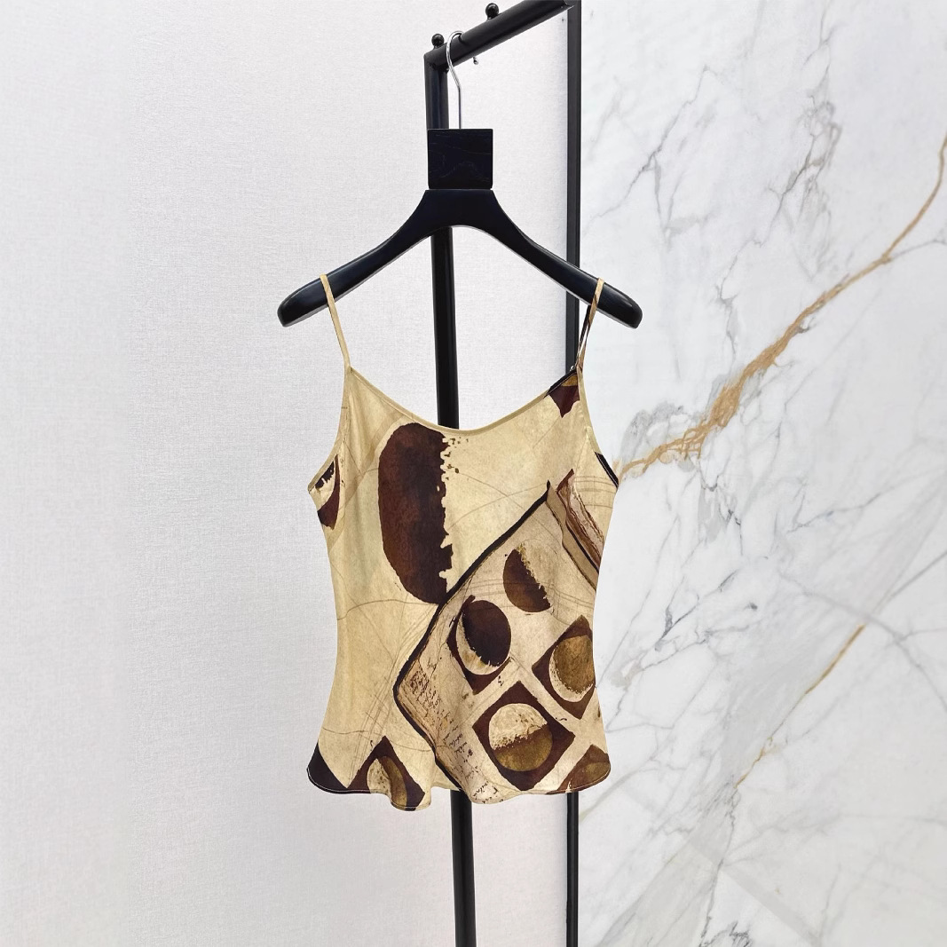 深圳南油2025春夏复古韵味东方美学时髦小众设计几何图案短款吊带