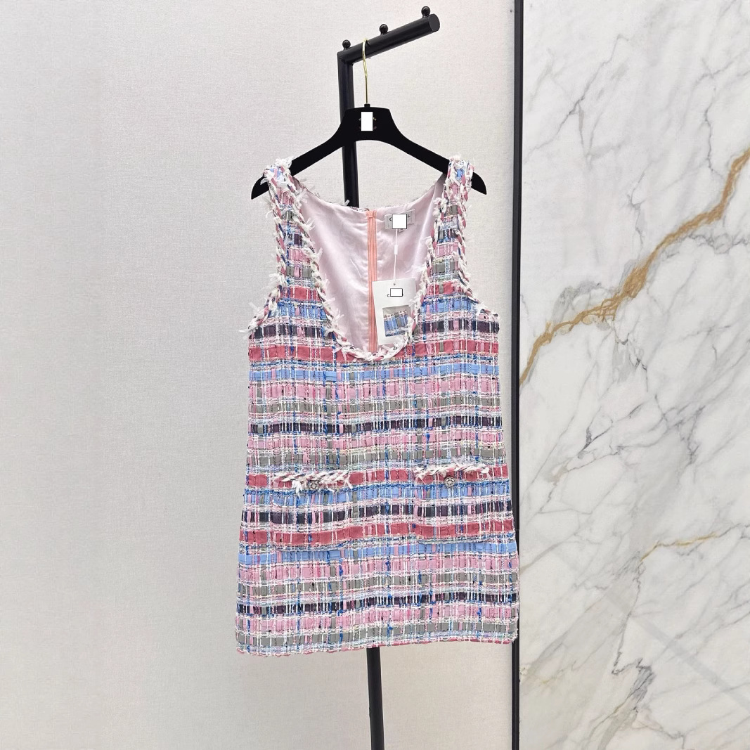 深圳南油25春夏高端女装复古时髦小香风粗花呢无袖连衣裙