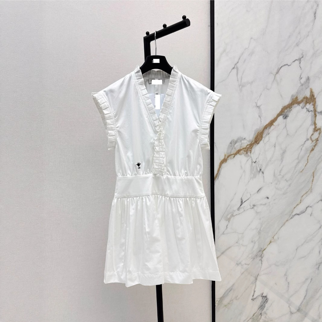 深圳南油25春夏高端女装浪漫气质优雅简约法式荷叶边坎袖连衣裙