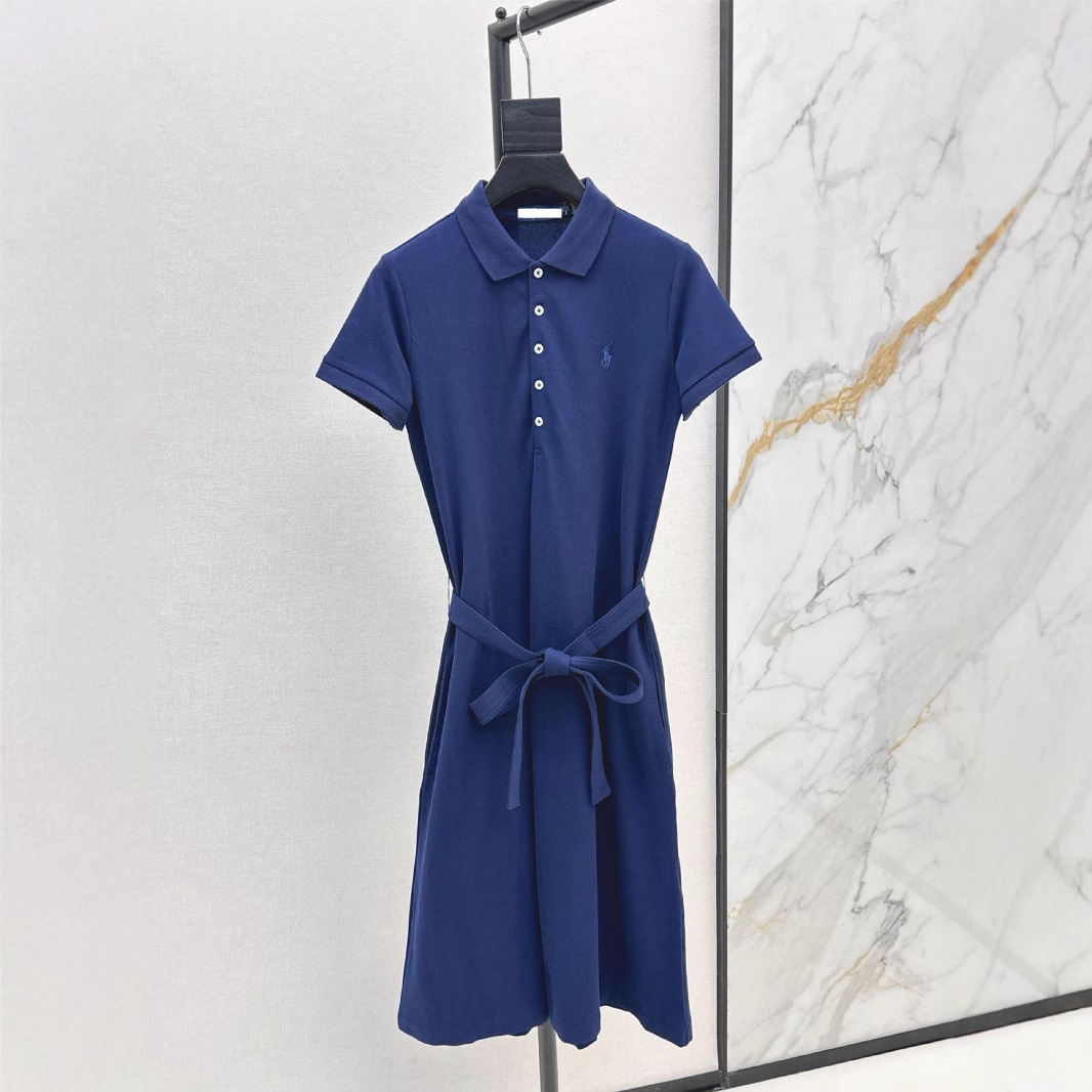 深圳南油25春夏高端女洋气减龄经典logo刺绣装饰腰带polo连衣裙
