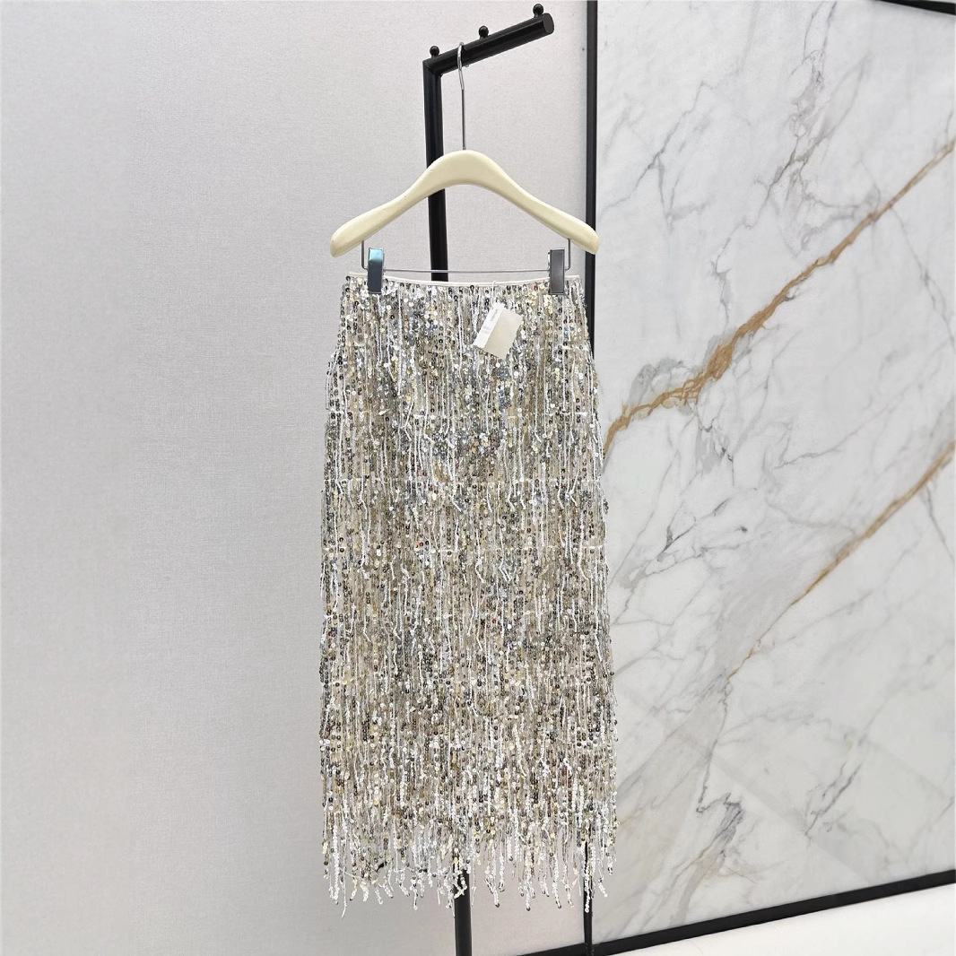 深圳南油25春夏高端女装高智感优雅气质垂坠感流苏亮片长款半身裙