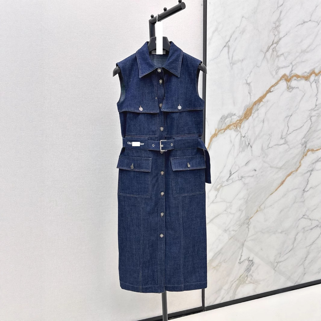 深圳南油25春夏高端女装简约高级收腰设计翻领无袖牛仔连衣裙