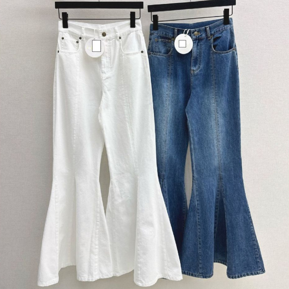 深圳南油25春夏高端女复古优雅随性帅气鱼尾喇叭型牛仔裤