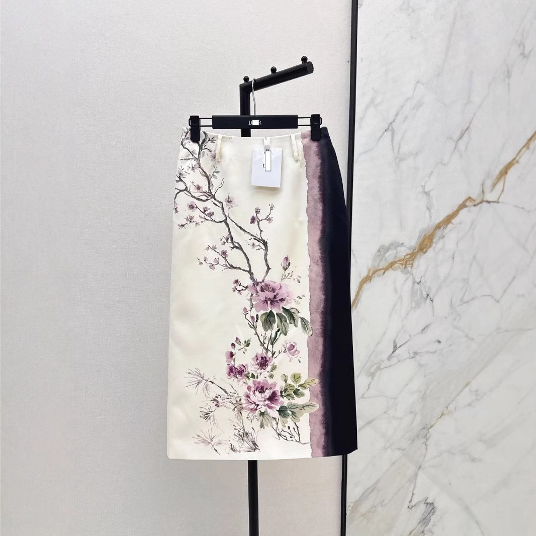 深圳南油25春夏高端女装气质又随性优花卉印花后开叉半身长裙