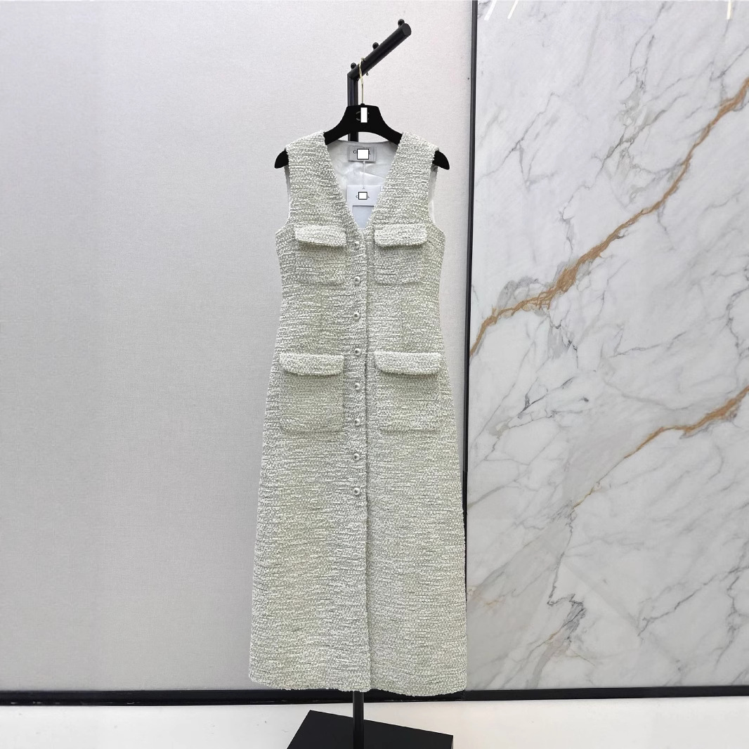 深圳南油25春夏高端女装复古编织经典版型无袖长款马甲裙