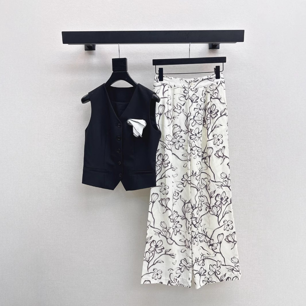 深圳南油25春夏高端女温柔优雅小众马甲外套+印花阔腿裤马甲套装