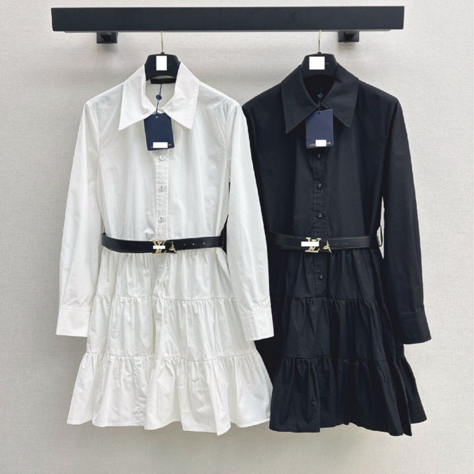 深圳南油25春夏女装简约logo腰带装饰衬衫连衣裙