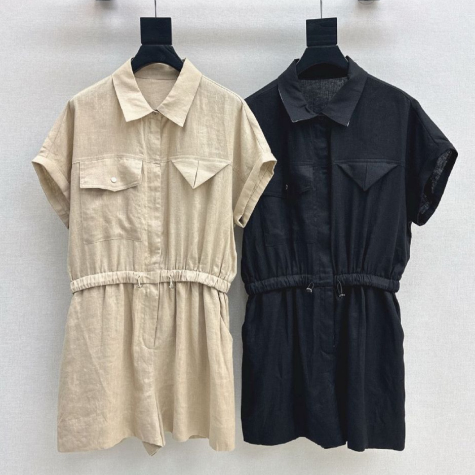 深圳南油25春夏高端女装可酷可飒工装风抽绳收腰设计亚麻连体裤