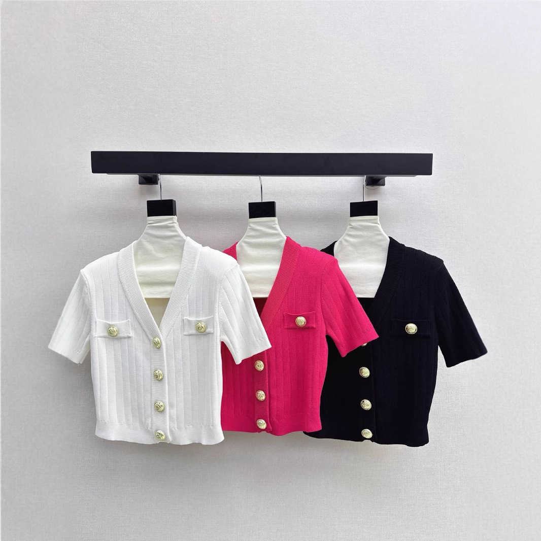 深圳南油25春夏高端女装高级氛围感短款重磅针织上衣
