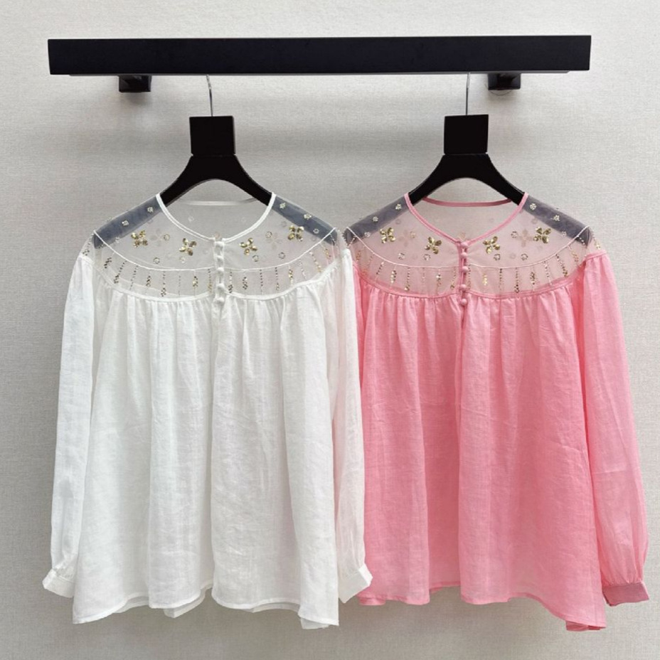 深圳南油25春夏高端女装细节满满刺绣花边V领设计收腰上衣
