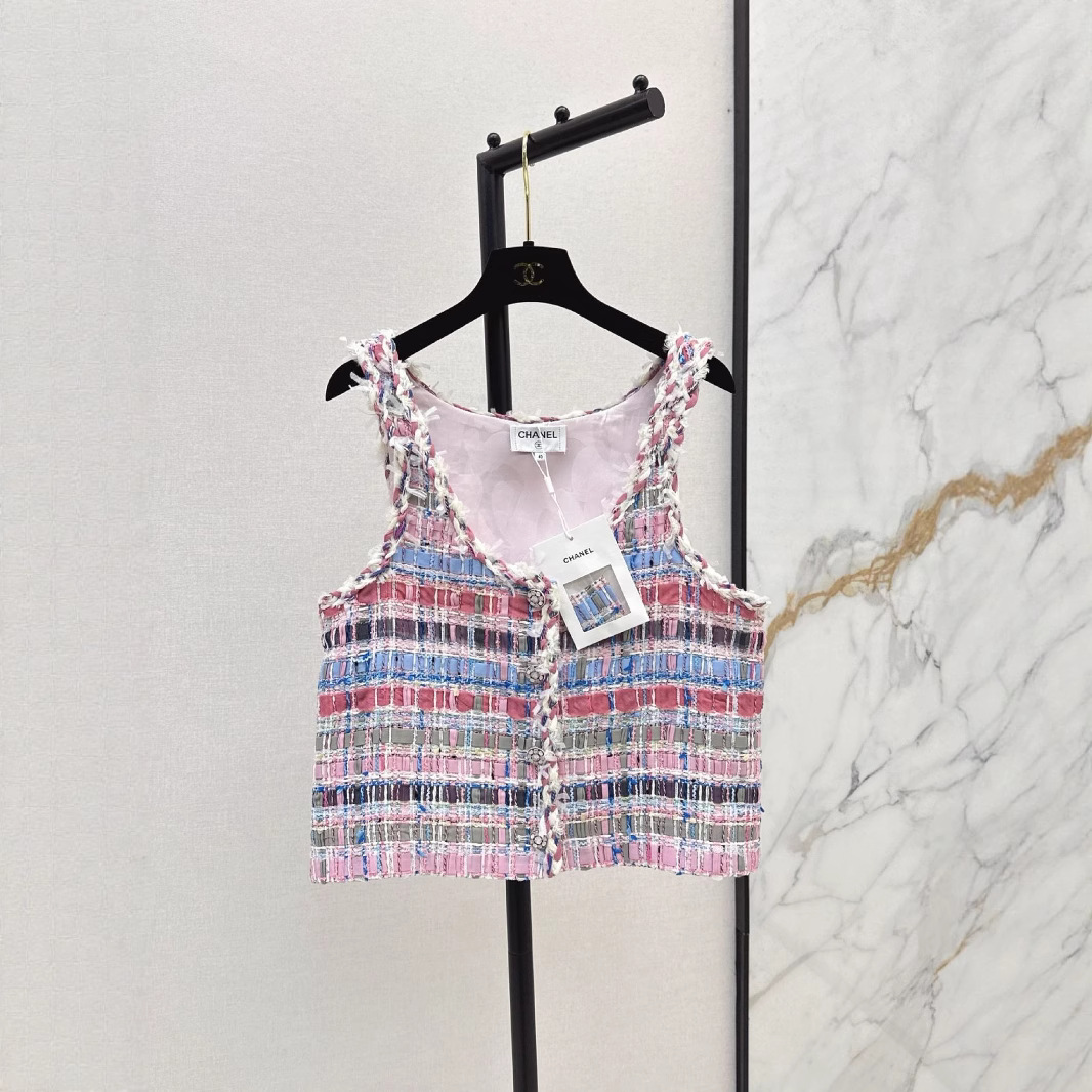 深圳南油25春夏高端女装复古时髦小香风粗花呢短款小背心