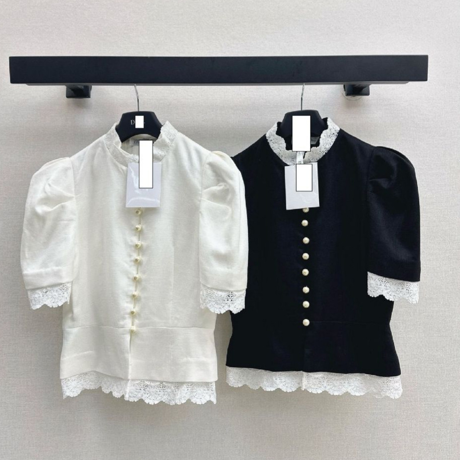 深圳南油25春夏高端女装豪门贵气拼接刺绣花边泡泡袖上衣